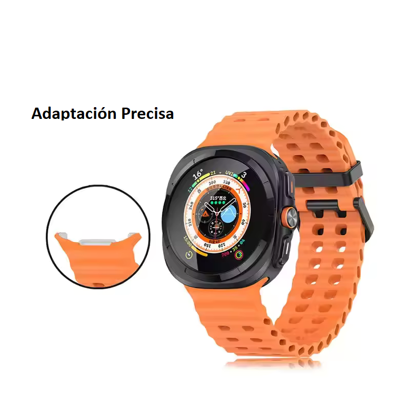 Resistentes al agua y fáciles de limpiar, estas pulseras son ideales para personas activas y estilos de vida dinámicos. Compatible exclusivamente con el Galaxy Watch 7 Ultra, su diseño preciso asegura un ajuste perfecto al reloj, manteniendo la funcionalidad de todos los sensores y características. ¡Haz de tu smartwatch un accesorio versátil y único!